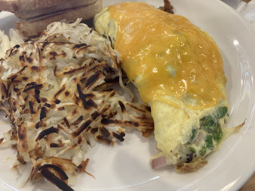 Read moreThe atmosphere is very pleasant, nicely decorated but not overdone. Service was friendly. The menu offers several interesting breakfast items and we choose the eggs with corn beef hash, and the sausage gravy biscuits with two eggs along with the fruit cup and house made sausage patties. The corned beef hash was delicious, the eggs, ordered soft, were a bit overcooked. My partner was pretty meh about the biscuits and gravy. We shared the fruit cup but the melon was hard and not yet ripe - it looked pretty though. My partner liked the sausage patties but I was less enthusiastic after sampling. If you have any mobility issues, choose a table over the booths, which are narrow and difficult to exit. Overall, we enjoyed our visit here and plan to give it another try...