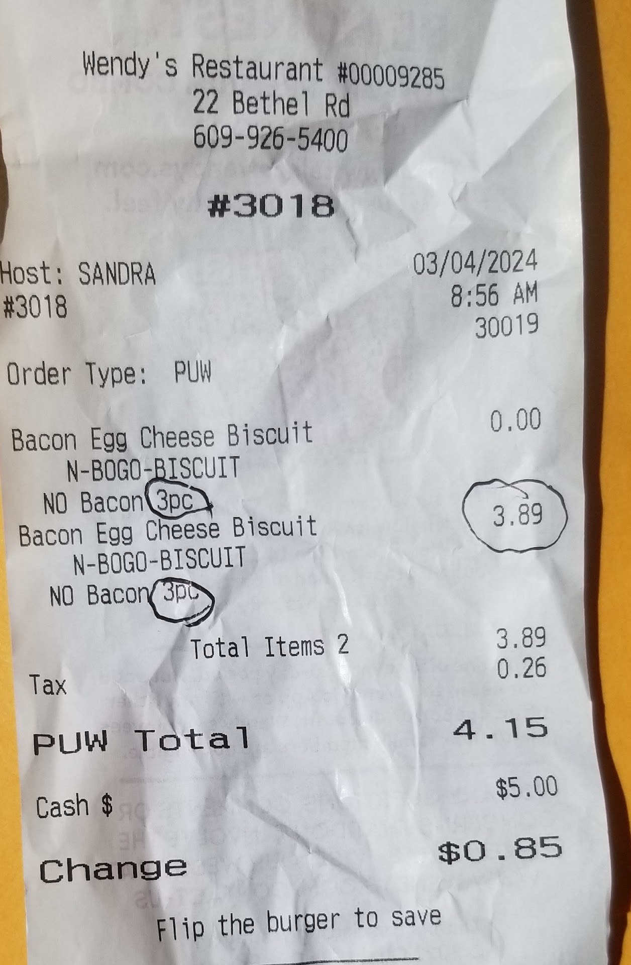 ย ย ย Read moreDrive thru Somers Point: I ordered 2 egg & cheese biscuits with a BOGO coupon. 1st she said I couldnt use it cause it was 2/$3. I said no, its 1 biscuit, then another biscuit, not the special.(BTW, I had to repeat 2x it was a egg& cheese, not bacon, egg, cheese. I gave her $5 with the coupon. She gave me $.85 back. NO WAY. I asked for receipt. She charged me $3.89 for B,E,C with no bacon. I dont know where she got that price. The online amount is $2.59 & an egg&cheese is $1.99. Then she gave me an attitude & called her GM. That person proceeded to come to the window while on the phone, no eye contact or response... went into the register & handed me back $2 without eye contact or response. No "sorry" ... nothing. Oh wait, did I say that was the 1st & last time I would EVER...