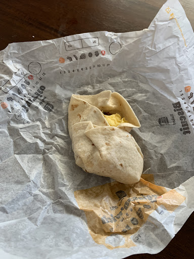 Brand new restaurant, horrible old food. How is this even a thing? I would think before opening a new eatery, the staff would be trained on how to prepare food. This picture is my breakfast burrito jr that has just been wadded up into the package. This is par for the course with this place. I have given them multiple chances thinking it might be a fluke, But every time my order is wrong both in what I order and or the preparation. something else is I’ve never actually gotten my food at the window during drive threw. They always make me pull forward and wait 5 mins before walking my food out to me. Not to big of a deal but annoying when it’s every time and mixed with constant wrong orders and low quality food preparation I would classify this business as...
