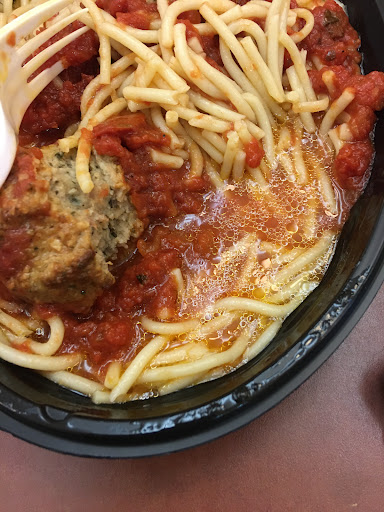 This is quite possibly the worst restaurant i have ever eaten at. I got there and tried to order a Stromboli, and i was unable to do so because apparently the only thing they had left for the night was some noodle dishes, a couple slices of pizza, and breadsticks. I was on the way back from a long road trip and was very hungry, so i decided to try this place anyways and settled for the spaghetti. To begin with, the noodles were cut up to be about an inch long each. There were chunks of random things in the noodles as the server was scooping them, and the sauce was very watery as you see in the picture below. This store obviously doesnāt have enough employees either, because one of the two women working had an auntie anneās uniform on. I will not be...