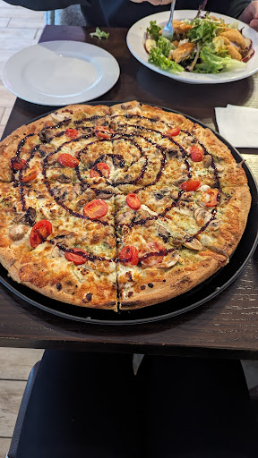Read moreI'm torn with this review. So here is our story. We were visiting a friend who lives 2 min from this establishment. We ordered 2 pizzas, chicken tenders, and veggie fries and we were told 15 min to pick up the order. We arrived on time and the host replied it will be a few minutes as the border is waiting for an item to be made. We were fine most of these items only take 8-12 min to make. So to kill time, we grabbed a beer at the bar. 20 min expires and they check again on the offer, still needs time... After another 20 min the bartender heads to the back and pulls out our order.
