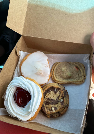 Read moreI do not have photos. But ordered (2) 2 biscuit and gravy trays and then we got a apple fritter, peanut butter brownie, normal glazed donut, and a glazed raspberry filled donut. And if the donuts had not been good this would of had even less stars. I don't know if there gravy always taste bland but it was NOT good at all. The sausage even tasted funky and spoiled to me. I added salt/pepper and it truly didn't help. I have lived in KY since 2009 and today was my first time ever and while I'll be back for pastries etc I will not give there food another try. I'd love to make my sausage gravy for your establishment and unless it was a bad day for it, I feel that it would be a TOP SELLER if its not now. My husband also said the same thing. That the gravy was bland and that in fact the sausage didn't taste right. I thought it may of just been me. I aint sure if its homemade gravy OR packaged but it needs fixed. And also, everyone shouldn't look like they hate there job. Even if...