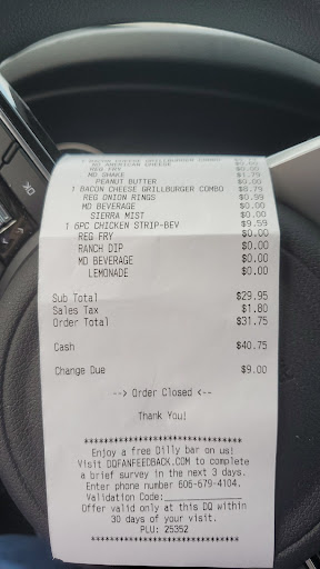 I never leave reviews but… My meal was 20 bucks..3.49 for three pieces of bacon?! 2.59 for a hash brown that averages 40-50 cents off supplier trucks?! I know franchises and this owner has lost the plot on markup and I love to normally eat at Dairy Queen’s in my travels but this specific Dairy Queen pricing is beyond the consumer. My order was handed to me through drive thru and when I drove away it wasn’t my order. I turned around pulled back to the window and explained the mixup, the employee on speaker then told me I took the wrong order. No madame, I was handed the wrong order. No apology, no discount just a look from the younger staff versus the kind older employee actually at the second window. I then began to eat my bacon only to find a hair the size of Canada wrapped around the bacon (I’m bald so not mine). Will never return which of course they don’t care but maybe someone from corporate will 1-take a look at pricing thresholds as owners can charge more than suggested pricing but you also have to understand the consumer and the effect of outrageous pricing on the consumer for managed/franchised chains. 2- based on the patterns of reviews it would appear we have a staffing issue with mixing up orders..maybe some more training. 3- The hair...