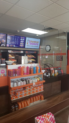 This Dunkins is located in a sketchy gas station, too. The service is not fast at all, which is the point of being in a gas station. I often wait 10 minutes for a simple mobile order, and they never have my donuts out, I have to ask for them. The point of mobile ordering is so I don't have to talk to people.