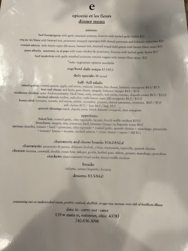 Read moreThe day after my daughter and I returned from Europe, we were sad our trip was over and looking for something to keep the European experience going for another day. I had heard about the Épicerie from a friend. He told me there was a great little French-style restaurant in Somerset that we needed to try. So, we decided to give it a try that day after getting home from Europe. Wow! We were all so impressed. I took my wife and 2 daughters, ages 8 and 17, and we all loved it. This is a quaint place, reminiscent of a European cafe. The staff is very warm, attentive and conversational. Also, you are not rushed which is refreshing. The food is incredible. We all had different dishes and all were excellent. The appetizers, coffees, and wines were all fantastic and complimented the food well. If you’re looking for a little taste of France, Italy, Spain, Belgium- or just Europe in general- right here in rural Ohio, this is your place. We had to drive 30+ minutes to get here from North Newark, but it was worth it and we will...