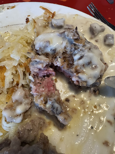 Read moreNot really sure who rated this place so highly, or why, but this might've been the worst breakfast dining experience I've ever had; at least that I can remember. The sausage 'gravy' was like soup, the hashbrowns were greasy and luke warm, and 'hard' from sitting on the grill too long... annnnnd the waffle was literally flat! (Ever see a flat, Belgian waffle!??) The 'dark' toast came out lightly toasted and coffee was refilled ONE time, then never offered to be refilled the rest of our stay. I never complained directly, so our waitress was completely unaware of the poor dining experience. (She didn't even notice that I only ate the bacon and eggs, leaving the rest of the entire plate untiuched!) My girlfriend had the waffle, which we just kind of picked at. We actually discussed stopping at the grocery store on the way home, to buy breakfast items for later today!
