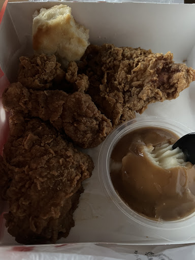 Read moreLet me start on a positive. They girl who took my order at the drive through was very nice. When I arrived there was 4 cars in front of me. Seems like a typical line at that hour of the day. Now the negative. I ordered chicken little meal with fries and two extra chicken littles. First the mayo was not just in between the bread, it was ALL OVER outside as well. Chicken was barely warm and tasted like it had been sitting under the heat lamps for awhile. The buns were not fresh. That was the best part of the food. I took one bite of the french fries and wanted to gag. Nothing but SALT. I couldn't even taste the actual french fry. I can tell you they were cold, which if that was all I would have eaten them, however that much salt that you can't even taste the food. I had to throw the fries away, scrape all the mayo off my chicken littles and choke them down because I had no other time to get another lunch. I had not been to KFC in a year or so. Thought I would try it and regretted it. I will not be returning...