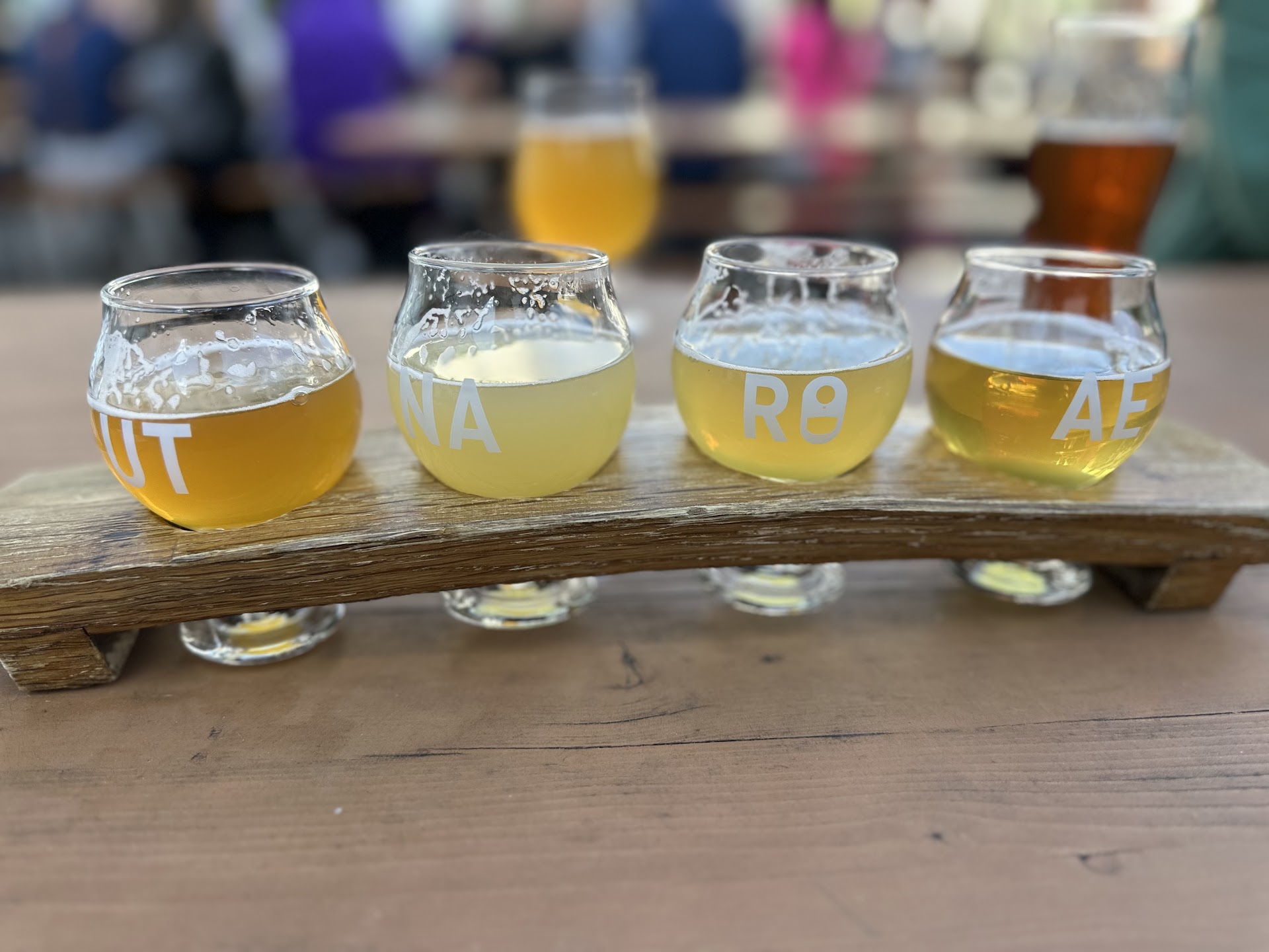 Read moreI'm here now, with three adults and three children. I wouldn't recommend this place for children at all. We brought Lego sets for the kids to assemble and are watching them closely, but have had employees come over repeatedly to give us feedback on the kids. Once, I'd ventured beyond a sign I didn't see saying not to take drinks past it, with a drink and a toddler, and I completely understand they have a strict rule on staying in bounds. But, it wasn't necessary for a lady to come running out yelling 'There's a sign!' and continue on and on. It was clearly rude -- I get that it's an important issue, but it was a mistake. She went in, and another man began to chime in. It was just completely unnecessary to pile on-- I'd been apologetic and was coming back as fast as I could get my two year old to go. A few minutes later, my son was calmly sitting cross legged on the picnic table working on Legos, and a man came over to tell him to get down. Just now, the kids knocked their bench seat over as they stood up quickly. We were immediately standing it up, but this man is mean mugging us from the front and the bottom line is it's not remotely kid friendly. Bartender was nice! Wouldn't recommend...