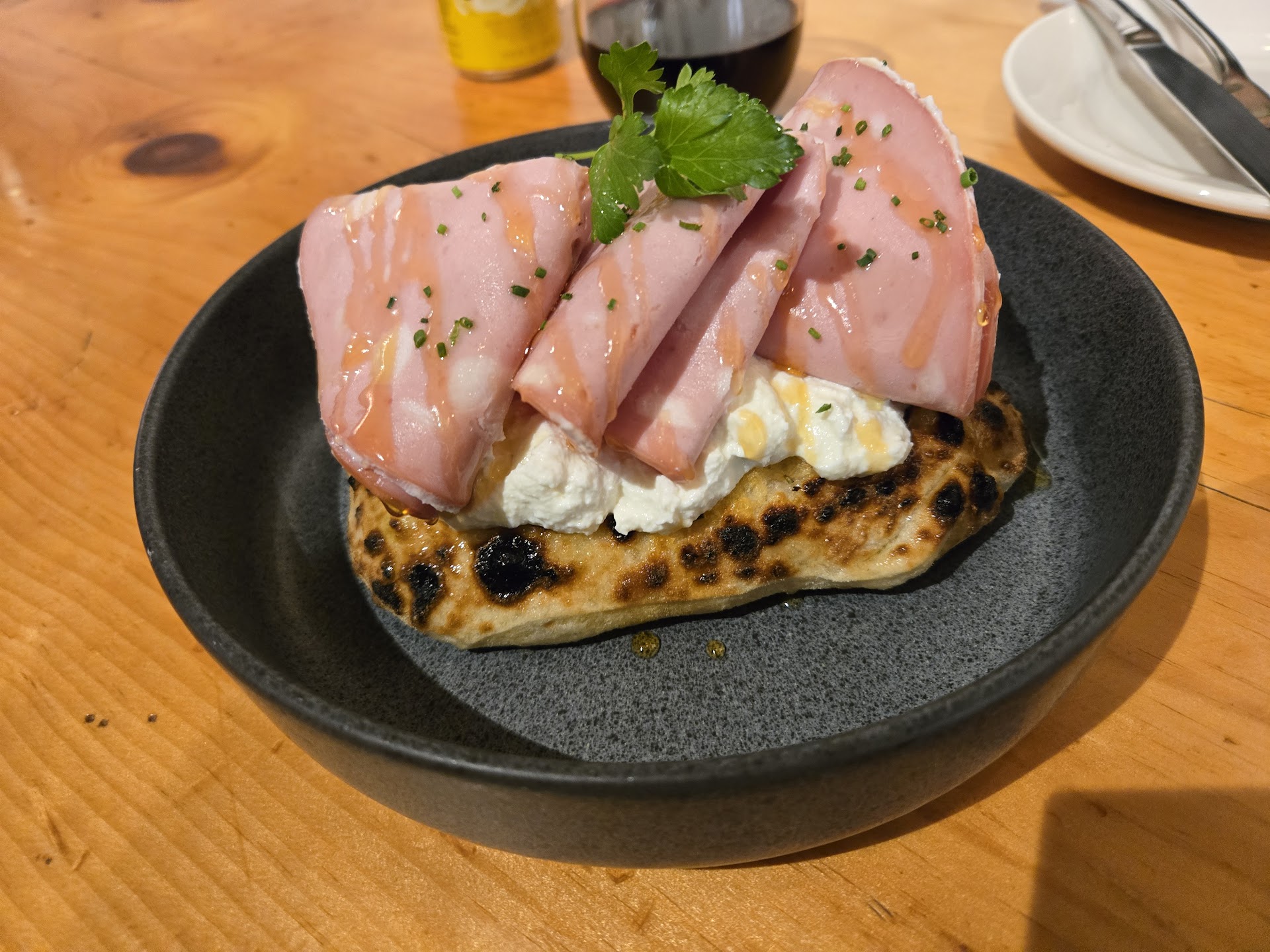 For the pizza, we opted for the Salsiccia. Definitely not your minimalist Neapolitan. This one came fully loaded with fennel sausage, mozzarella, and chopped basil, covering the entire surface. The crust had those signature puffy corniciones and a soft, foldable center with a beautiful char that played nicely with the sausage's extra grease. Easily one of the best Neapolitan-style pizzas I’ve had in the city. The default spice level was pretty high though, so I recommend asking them to go light on the pepper flakes.