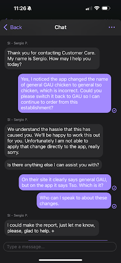 I do like your food and would love to keep ordering form you, but I will not order again if the dishes are getting smaller. I understand a restaurant occasionally raising prices. But when you reduce the size of a product your customers have gotten used to and keep prices the SAME... or RAISE them? You will lose faithful...
