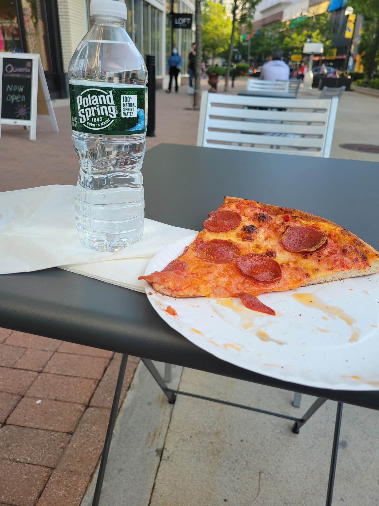 Read moreI went after seeing Sonic the Hedgehog 2 with my kid, in fact after every movie we go there and she gets cheese and I get Buffalo chicken I forget to tell them don't hear up the Buffalo they are under a heat lamp they are hot only because I have no upper teeth so I'm burning the roof of my mouth and cutting my upper jaw. On the price I'm cheap and if I'm lazy I'm a papa John's delivery so my mind is $12 for 2 slices of pizza this is a treat for an...