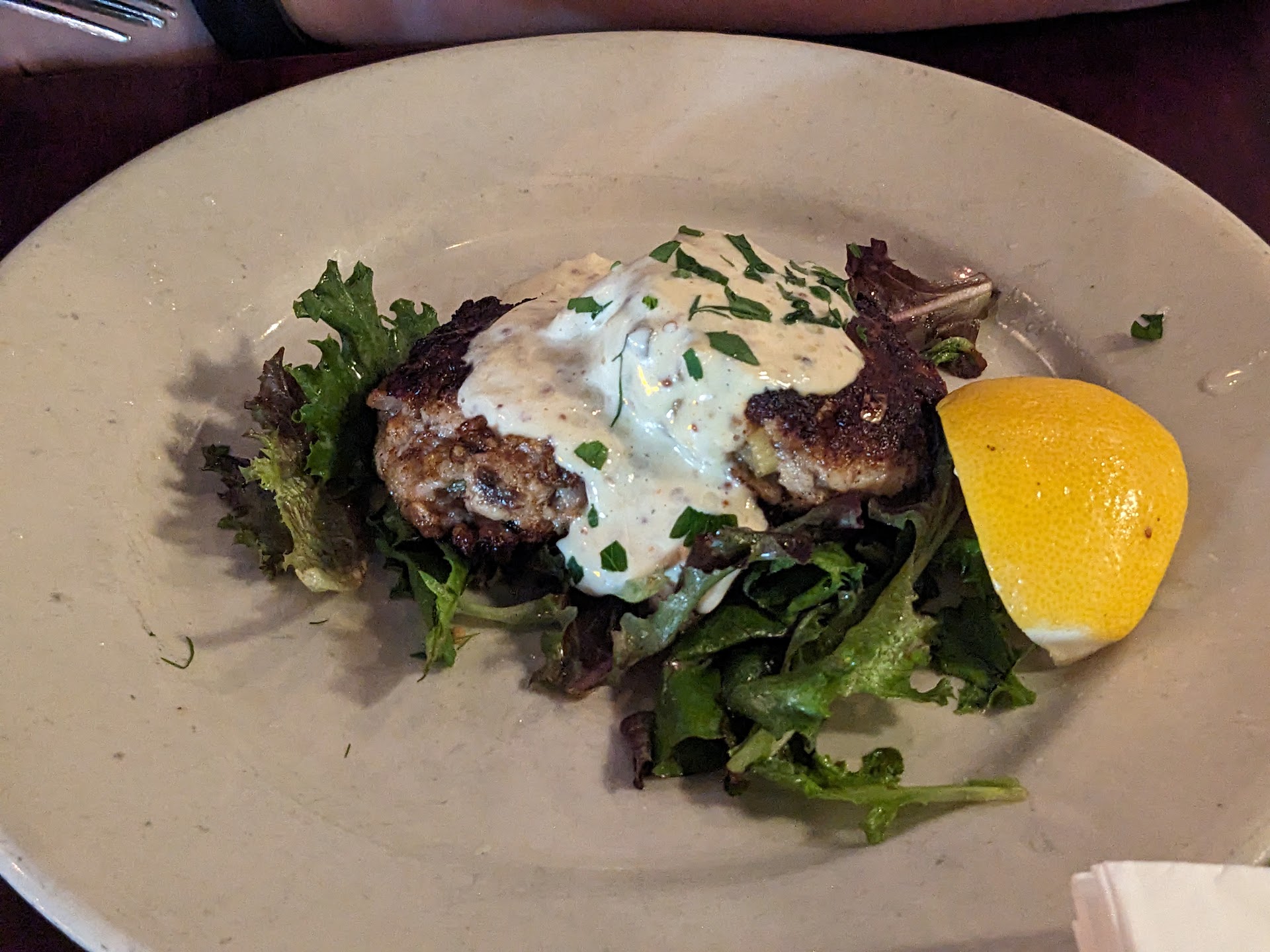 I kicked off my meal with the Smoked Cape Cod Bluefish Cakes, and they were nothing short of spectacular. The combination of the red onion, corn, and cilantro garnish provided a delightful contrast to the warm, perfectly cooked, and tender fish cakes. These cakes practically melted in my mouth, creating a harmonious blend of flavors that will be hard to forget.
