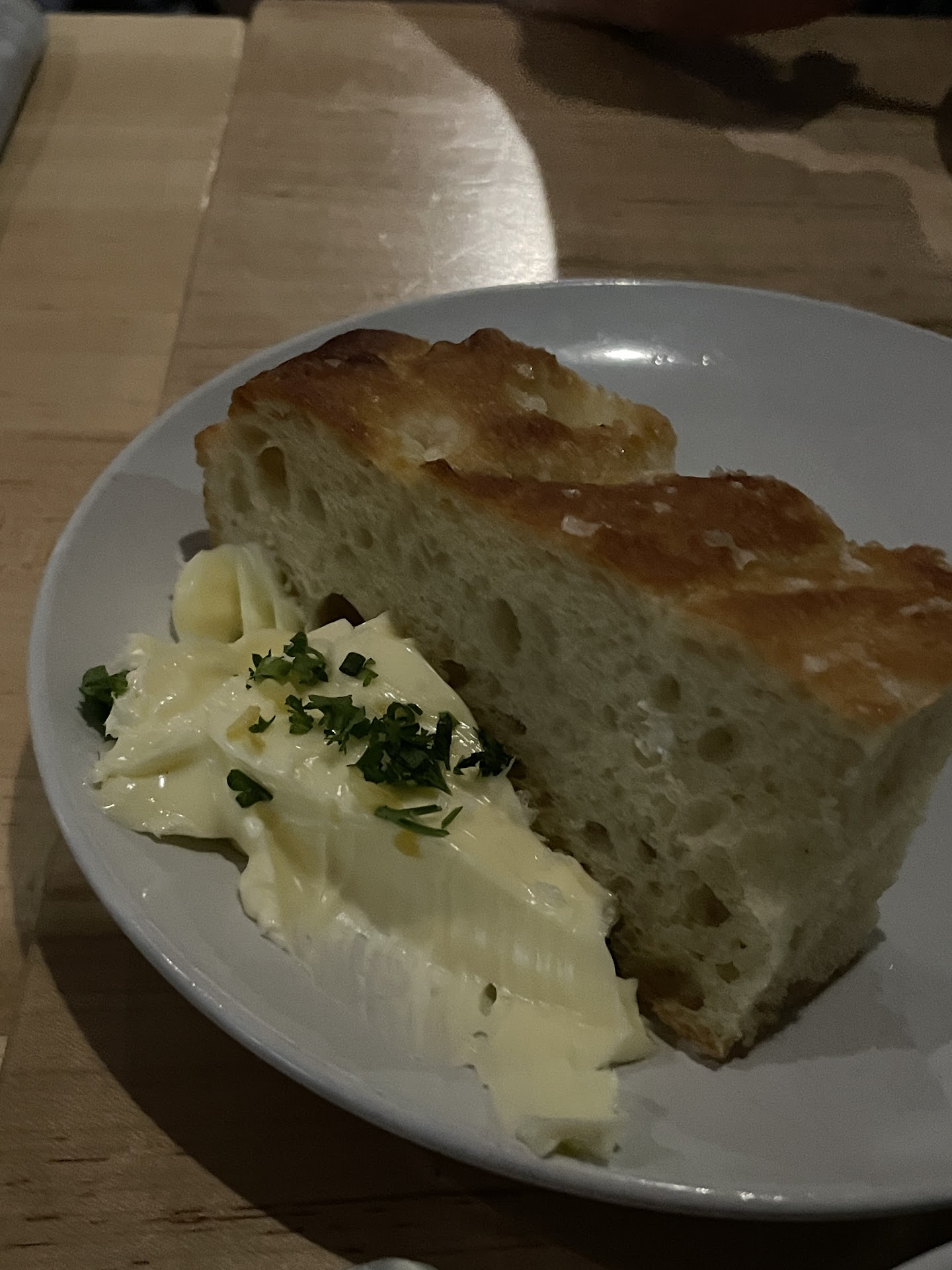 We split everything. focaccia - very good! The butter with a hint of lemon was amazing! The texture and subtle flavor were excellent cheese plate - the goat cheese was the best by far! The cow and sheep cheeses were good but they didn’t compare. That said, the cow (I think) had a very exciting and unique aftertaste jamon - skip it. Textures and flavors were all wrong. This made my night when we set it aside and the waitress asked for feedback, thanked me for the constructive criticism, and immediately without asking said she’d take it off the bill. mushrooms and ricotta - our waitress brought this out since it’s her favorite item after the jamon was bad. My girlfriend loved it (not surprising based on her love for both ricotta and mushrooms). I think it was probably good but cold mushrooms and vinegar are both hard for me, so I didn’t like it :) burger - totally fantastic. fries were the perfect texture, though would have been better without dill. aioli - very good, good aftertaste too chocolate cake - excellent. We were both stuffed but wanted to bring it home with us.