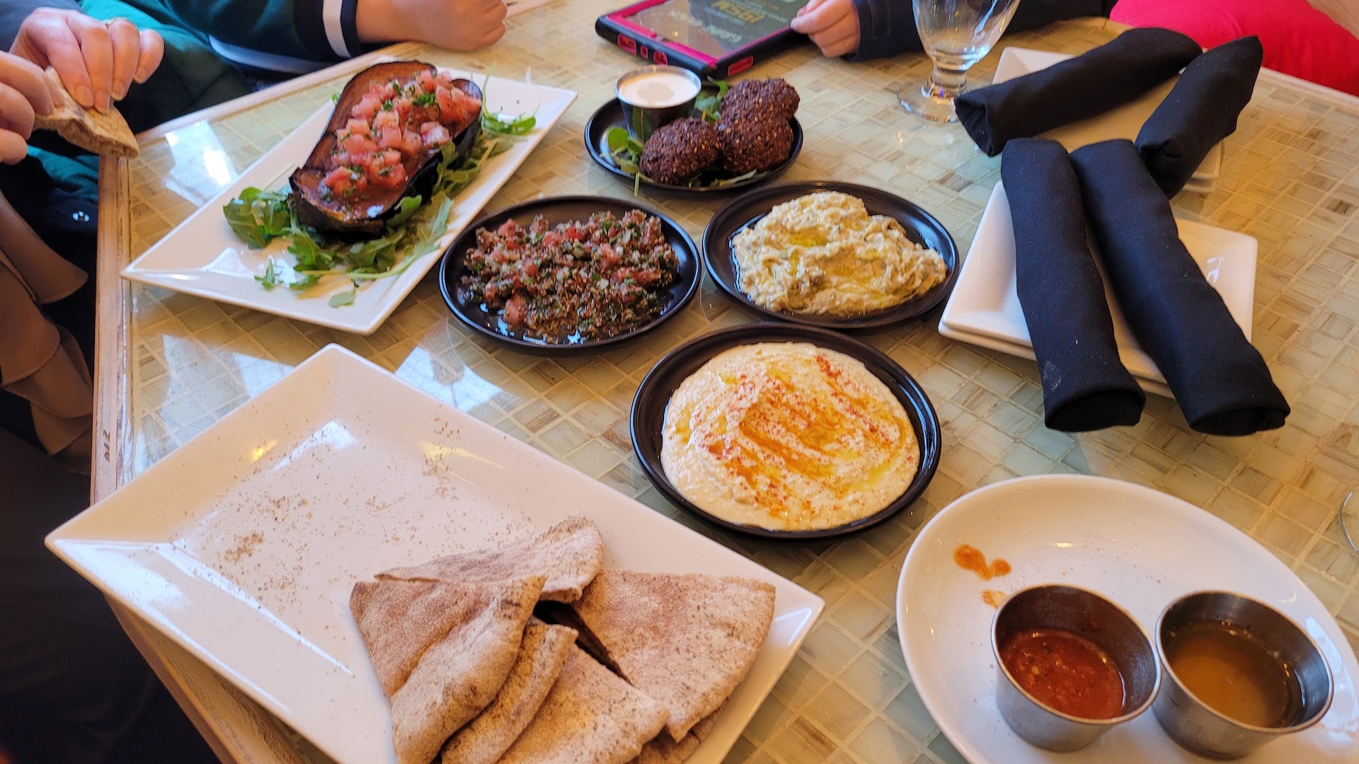 I want this to be an honest assessment, so I must mention the items that I cannot give a rave review according to my personal taste buds. The Egyptian platter includes a fava bean stew and it was ground, like a paste, instead of served with whole beans which surprised me. I think I discovered that I don't happen to care for fava beans, so that certainly is no one's fault. The cucumber tomato salad that came with it for me lacked some flavor. However if it were on the menu as a side, I would order it again and just add a little salt, as I am a cucumber nut, and it was so incredibly fresh. I found the Just Eggplant starter slightly bitter, but I also am quite sensitive to that.