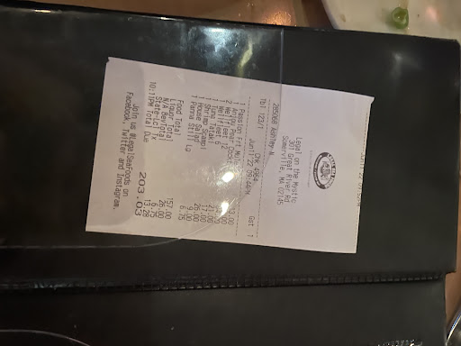 The food was standard for Legals. However, the appetizers were good - fried pickles, calamari, cauliflower. Bread was a bit stale. Two out of the three wines were really good. The chocolate mousse parfait was good but would have preferred just the mousse instead of layers of whipped cream. Our server was nice but was slightly overbearing, maybe because of what happened.