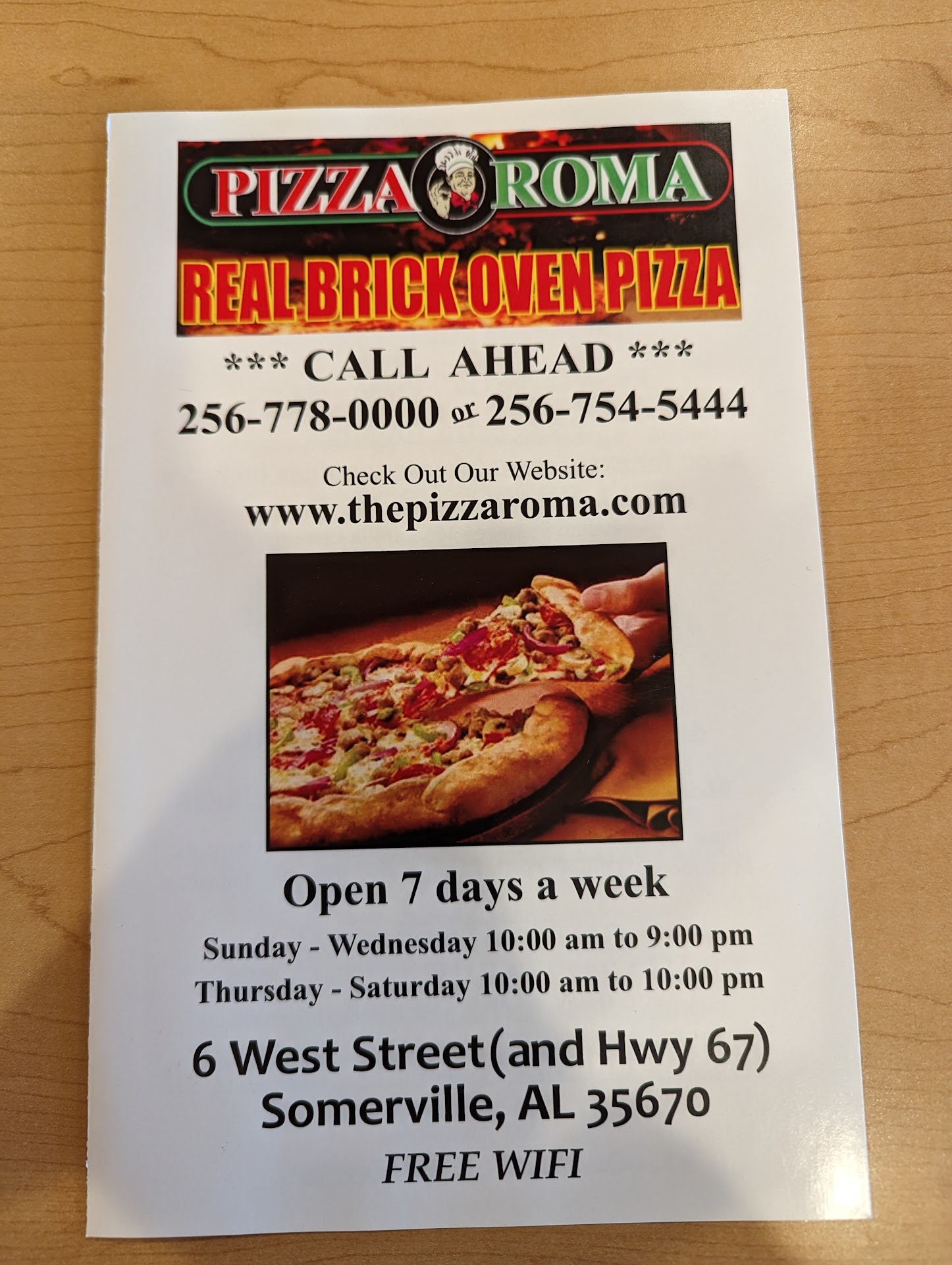 Read moreI'm not a pizza expert (my waist line would suggest otherwise) but this is truly a great place to eat. More of a pickup and take with you type place. As busy as they stay I don't think it's possible for them not to add on more space. We have all been to restaurant's and had to wait for a little while. That shouldn't be a big deal to people. I talk with the owner several times a week and you couldn't ask for a better and or positive business owner in a small town. Personally with the prices as low as they are I don't see how he can pay his staff but he manages well. I'm not advertising for them but I would. Word of mouth from satisfied customers is the best advertisement one can have. Let me warn you though when you go and order and this is off the record advice tell them when you call in for your pizza that you want an order of SWEET BREAD. YOU WILL FIND YOURSELF HIDING THE SWEET BREAD FROM YOUR FAMILY FRIENDS EVERYBODY. JUST CHECK IT OUT. ASK TO SPEAK TO THE OWNER IF YOU HAVEN'T MET HIM HE IS A VERY INTERESTING MAN TO TALK TO. HE AND HIS STAFF WILL I'M SURE DO WHAT THEY CAN TO KEEP YOU...
