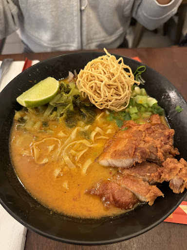 Lovely service and mostly authentic Thai cuisine. The lunch specials are a great deal at $12.95 for entree and appetizer. We had red curry with chicken and masaman curry. Both had great heat and spices. The most delicious part of the meal was the appetizer. We skipped the gyoza option (not Thai) and had what they called vegetable dumpling. The server explained it rarely is offered in a restaurant but is Thai. I forget the Thai name despite asking her twice what it was. I wanted to research it ao I could learn how to make it. It’s not really a dumpling but more like a triangular crispy puff of green veg and something soft. Terrible description but you will need to order it and see for yourself....