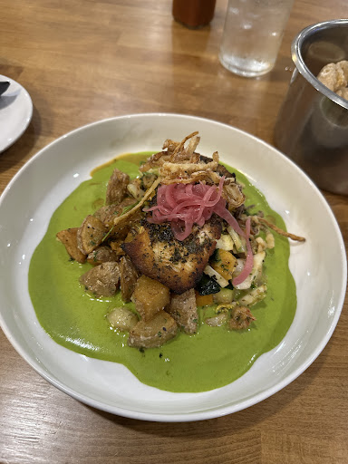 Went on a Wednesday evening. They had several empty tables but seated us next to a noisy group of ladies, but they were enjoying themselves. Our server was prompt with water and pork rinds, which appeared fresh but we did not eat any. We ordered the Caesar salad. The romaine was fresh and the croutons were light and crisp. We weren’t in love with dry Parmesan cheese or the heavy dressing, but the salad was a solid 4/5. We tried the filet mignon and the chicken carbonara for entrees. The cook on the filet was close to perfect, but a little seasoning would have pushed it over the top. However, due to an allergy, the normal parsley butter was omitted so maybe the seasoning got lost there. The grilled veggies were well prepared but the mashed potatoes, though silky smooth, also needed salt. 3/5 ( this will not be a go to for steak) The chicken pasta dish was truly outstanding! The flavors blended in a delicious creamy sauce, chicken was tender, and the pasta was perfect. A very hearty, satisfying meal that needed nothing added. 6/5 (reheated for lunch, sauce held up and still amazing!) The lemon curd with shortbread rounded us out, sadly, they were out of strawberries so served with a very sweet side of grapes. We didn’t care for the combination, but the lemon curd was fabulous. The shortbread was well done, but a case of less might be more? We scraped up the curd and left the cookies behind for the most part. We also ordered the special redfish and it was pronounced ‘pretty good’, lol. I don’t eat fish so, I can only say it was beautifully presented and was eaten! We will be back for the chicken and pasta and desert for certain. Our service was outstanding and we enjoyed...