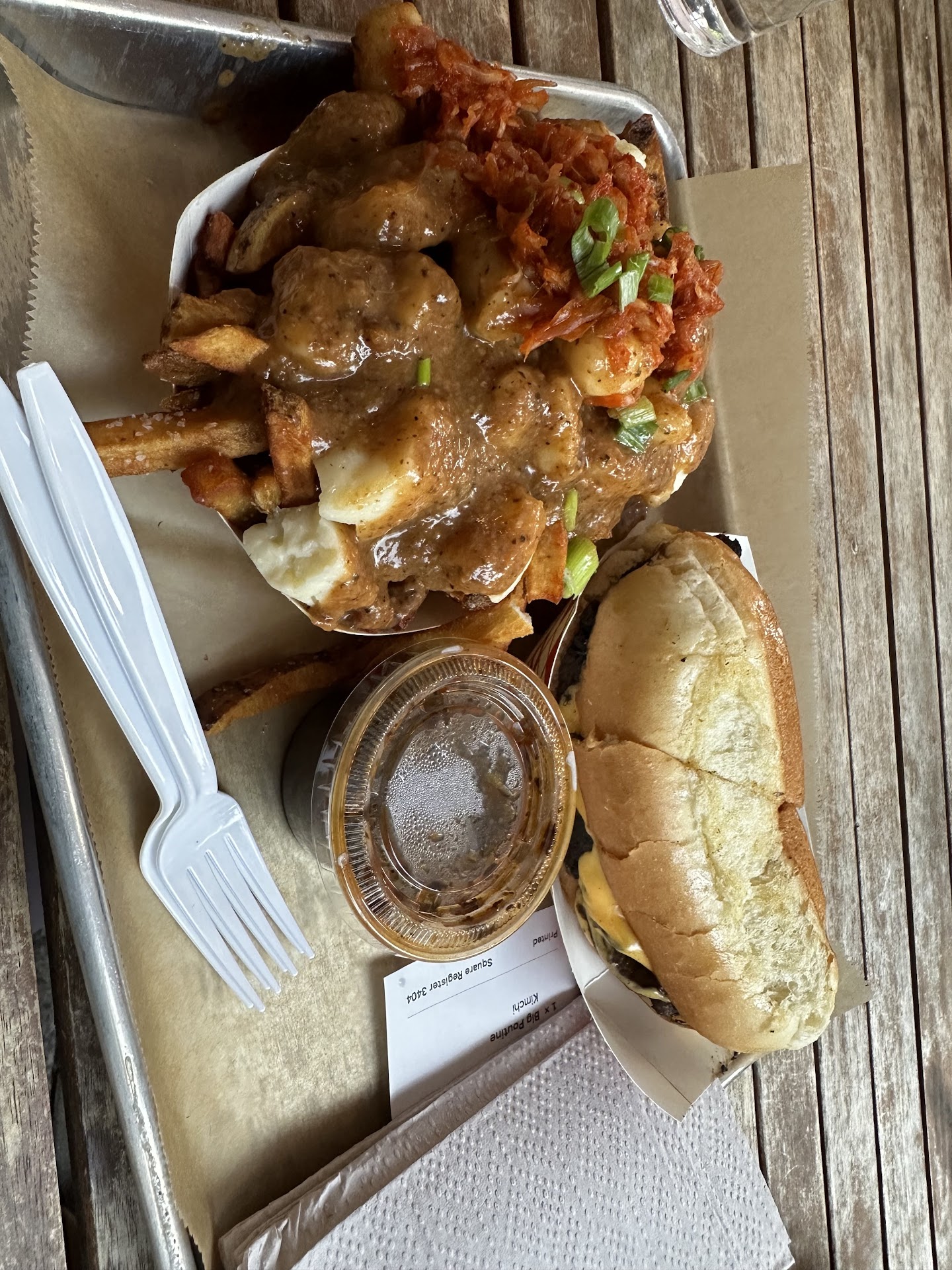 Ā Ā Ā Read moreBest vegetarian poutine I've ever had (including the vegetarian poutines I've had in Canada). The mushroom gravy is really savory and flavorful. Perfect amount of cheese curds. I ordered the "big" size and it was excellent as a dinner portion. I added the crispy scallions as a topping which was worth it. I loved the bit of crunch it added. I normally prefer my fries a little thicker but this was still delicious. My husband had a veggie burger and was really happy with it. He liked the coleslaw on it. They also have a few draft beer options and sell canned beers too. Good spot for vegetarian food but also reccomend it to anyone who is around and looking for a snack to go. Their meat substitutes are very thoughtfully flavored and would satisfy...