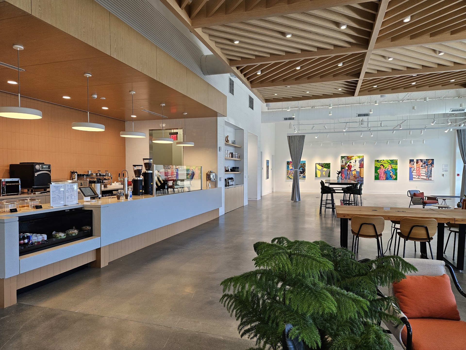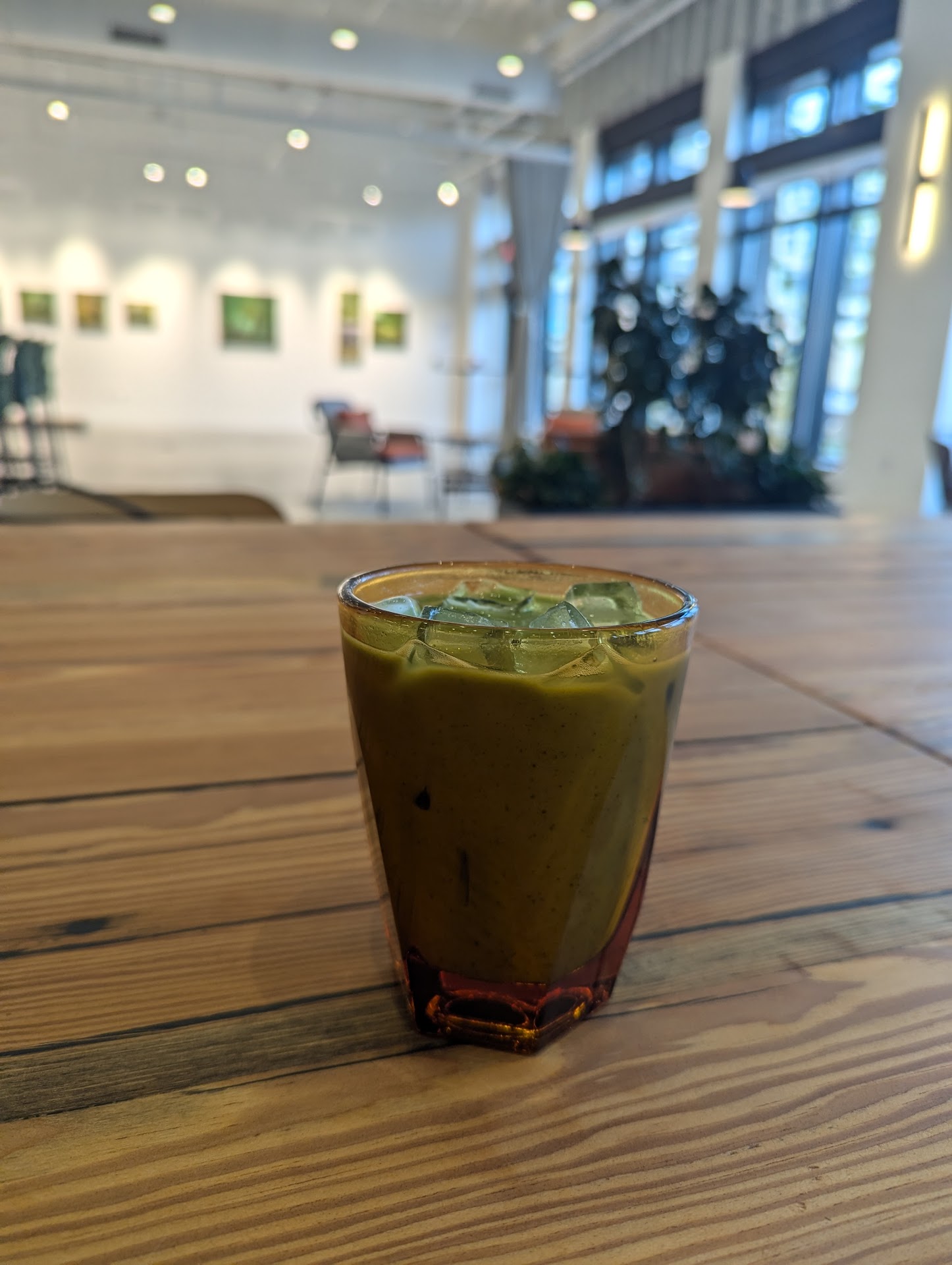 The coffeeshop is in the lower level of a co-working space. It is very spacious and has multiple types of seating (long wooden table, small tables for two, and multiple fancy cushioned chairs with short coffee tables in the middle). There’s also art being sold in one part which is an open space and makes the overall coffeeshop feel much larger and airier. The coffeeshop was neither too empty nor too full. The music was very low, if there at all, so it provides a quiet environment conducive to working,...