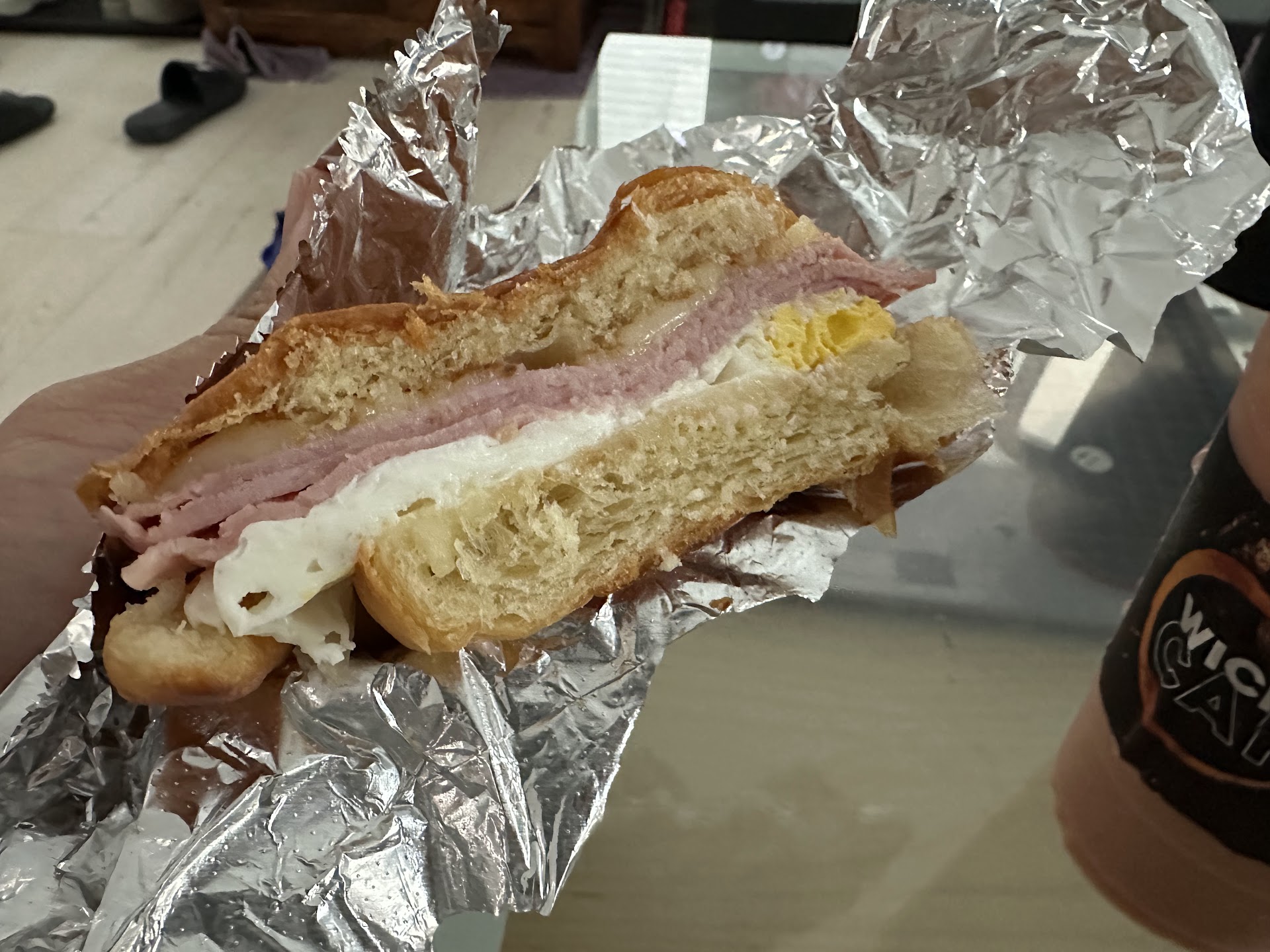 Food: We ordered two drinks from the long list of flavors and they were good, but not really craving inducing. I feel the same about the ham egg and cheese on a croissant. I initially wanted to order the prosciutto, egg, provolone but it seems like itâs no longer available. Disappointed to learn that it was still $9 dollars for a standard ham egg and cheese though. Looking through the other reviews it seems the bagels are worth a try.