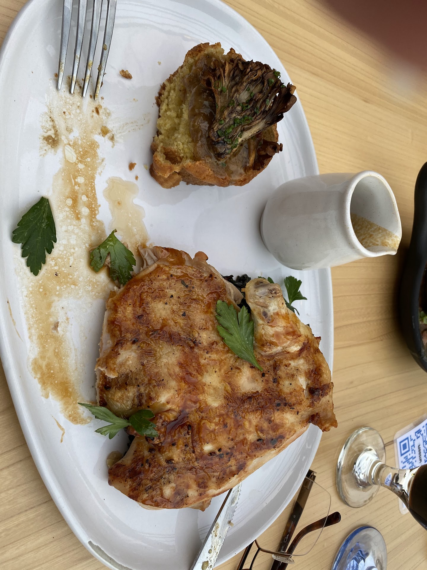 Pros: restaurant aesthetics and design was top notch. Menu was promising. Our server was very kind and professional. We really enjoyed the crab endive Caesar salad. We randomly ordered the truffle cream corn and it was so delicious. Highly recommend even if it’s not a perfect match with your entree.