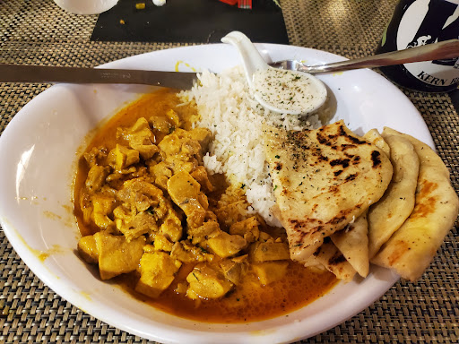 The curry chicken is probably the best curry dish in the motherlode. The portion was huge (you will have leftovers) and comes with a nice yogurt sauce to drizzle over each bite. The Naan bread is cooked in house and pairs perfectly with this dish. The aloo Chana was equally flavorful and another huge portion, it seemed like an entire can of garbanzo beans.