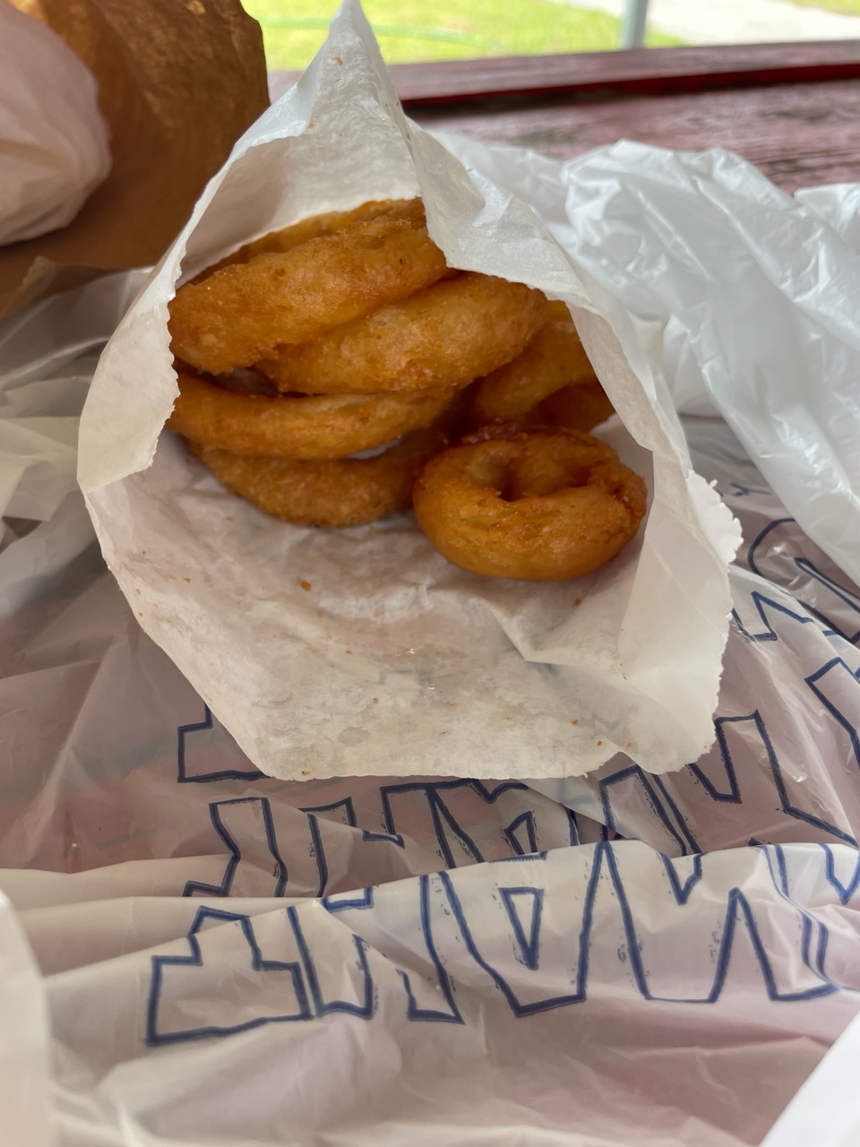 Read moreThe double cheeseburger was huge and delicious! I just finished moving a piano and I was craving something juicy and tasty. This really hit the spot! The only downside was due to the dimensions. As much as I tried to fit the burger in my mouth, it just didn’t work. I solved the problem by quickly taking a bite out of the top half first and then the bottom half next (side note: at first I took a bite out of the bottom and then the top which was a mistake became the bottom was being supported by the top). The faster you do this, the better. Onion rings were crispy and pretty much perfectly round too...which is important since they are, in fact, called...