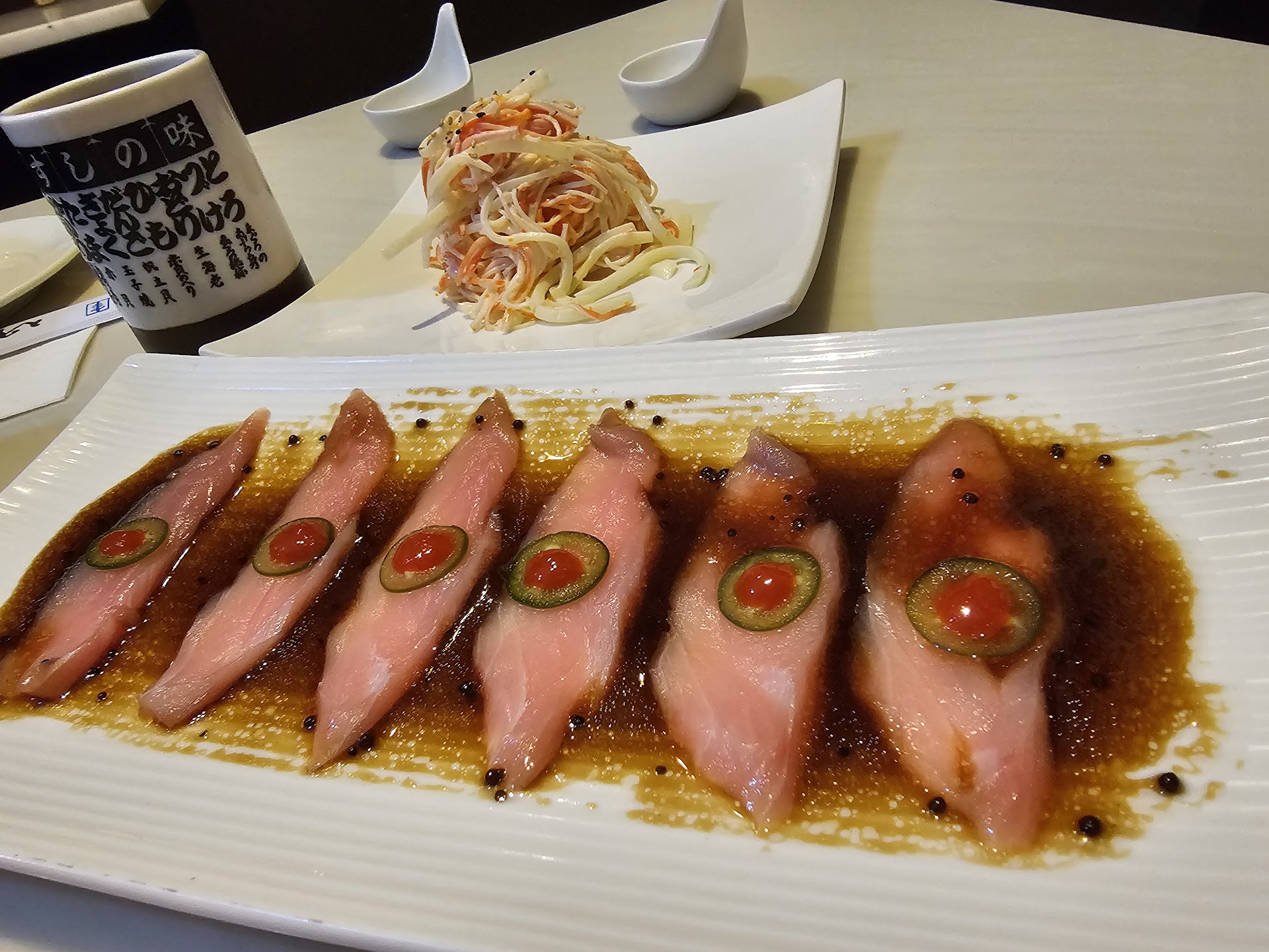 Read moreFirst time trying and I was pleasantly surprised with our entire orders presentation. Not a fancy place, the atmosphere is dimmed lights, small and Cosy, good spot for relaxed lunch. Prices are good. My absolute favorite was yellow tail appetizer with Halapenos, it was melt it your mouth good with a perfect kick of spice. Pepper tuna was OK. But I really Loved!!!! spicy girl roll. Godzilla (deep fried) was pretty good too. Liked the side salad, dressing was tasty. Liked that they do soup AND salad for the lunch special, not either or. Would definitely come back when I'm in the...