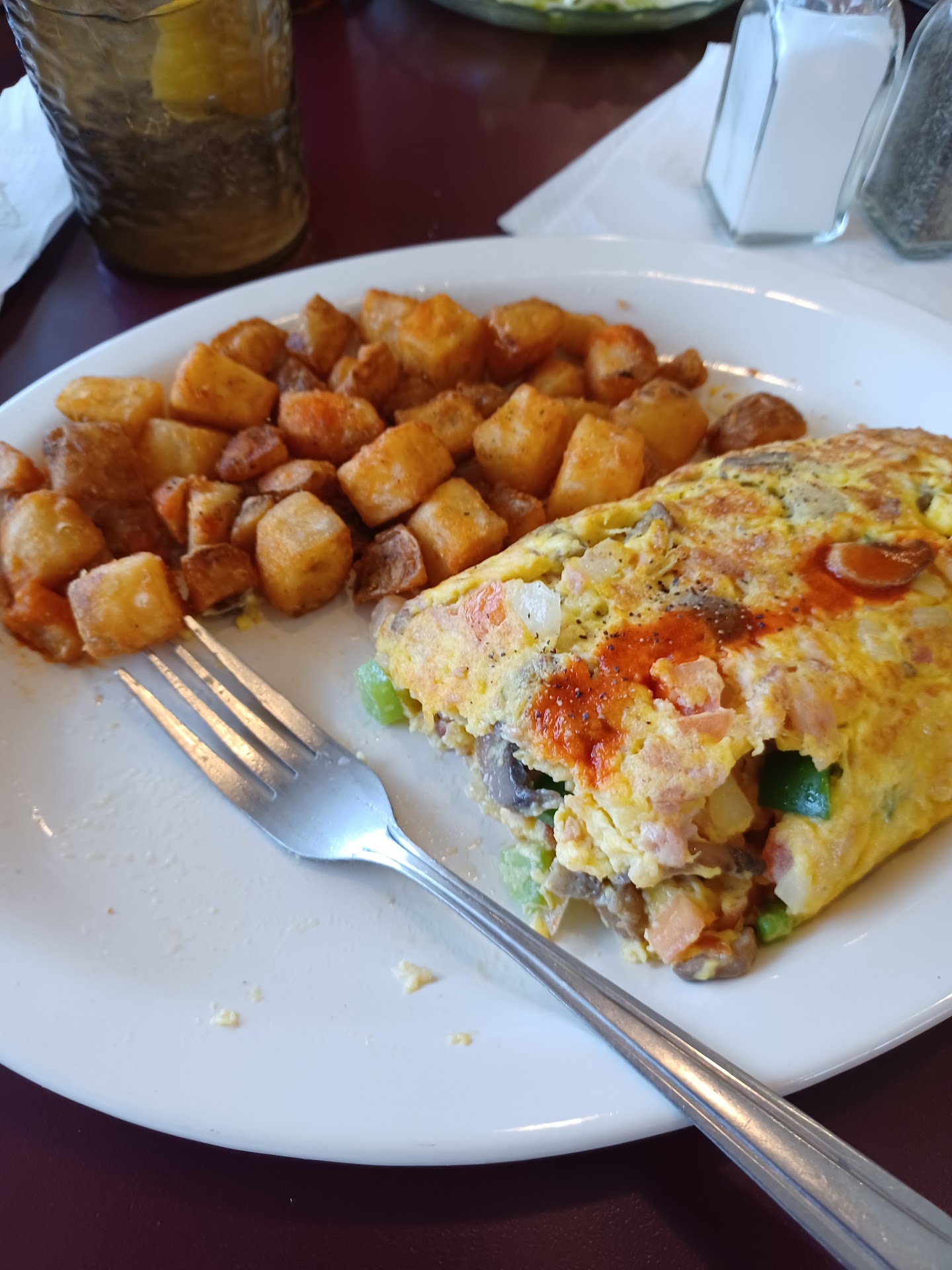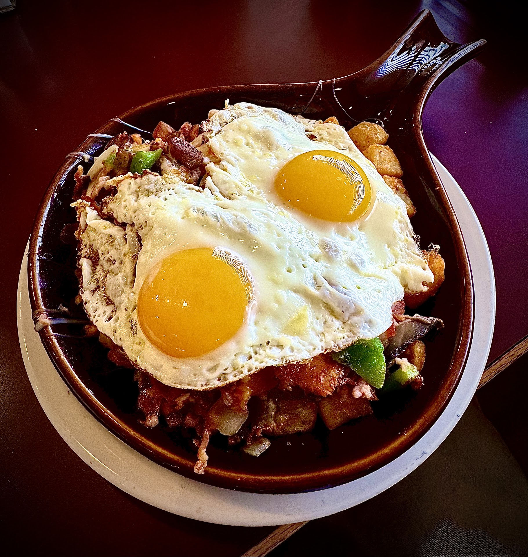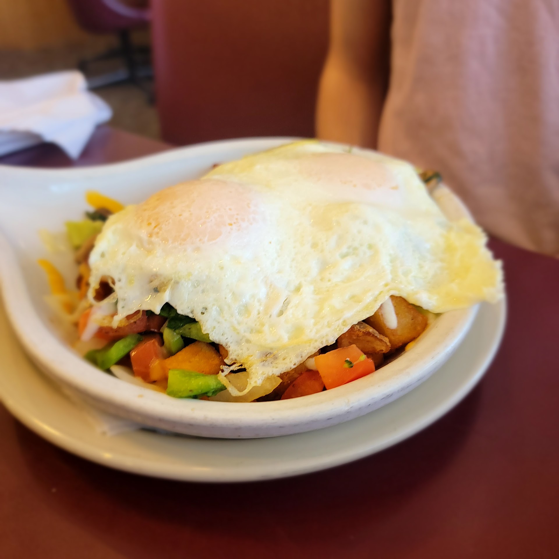 ORDERED SODA felt bad not ordering from menu. left paying $3 for 1 12oz soda and $1 tip..total $4 dollars for a soda. vegi skillet very good coffee good as always. take away mens room horrible.. dirty dirty dude I mention dirty.. absolutely no toilet paper..I know being short handed is difficult.. no excuse for the dirty restroom. more than just 1 day