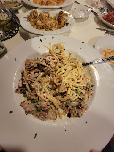I ordered the veal Marsala. Our server brought me chicken Marsala 🐔 , and when I told her I had ordered veal Marsala, she showed us her notepad and said "I wrote down chicken for both of you. See? So that's what I brought out." I went ahead and ate the chicken Marsala 🐔, and it was actually very good. The pasta 🍝 was perfectly al dente -- definitely the best part of the meal. The vegetables 🥕🫛 were also very good: perfectly crisp with just the right amount of butter 🧈. I also ordered a side of Alfredo sauce, which came out very bitter and soupy.