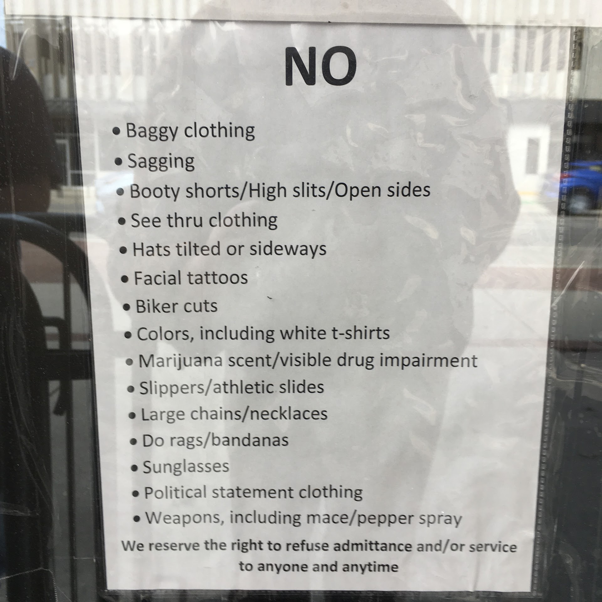 I proceed to ask politely. He becomes very annoyed and replies, "Well you could, but you're gonna take it off once you start getting warm in there, and the problem is my staff are TRAINED TO MAKE YOU LEAVE IF YOURE WEARING A WHITE SHIRT"