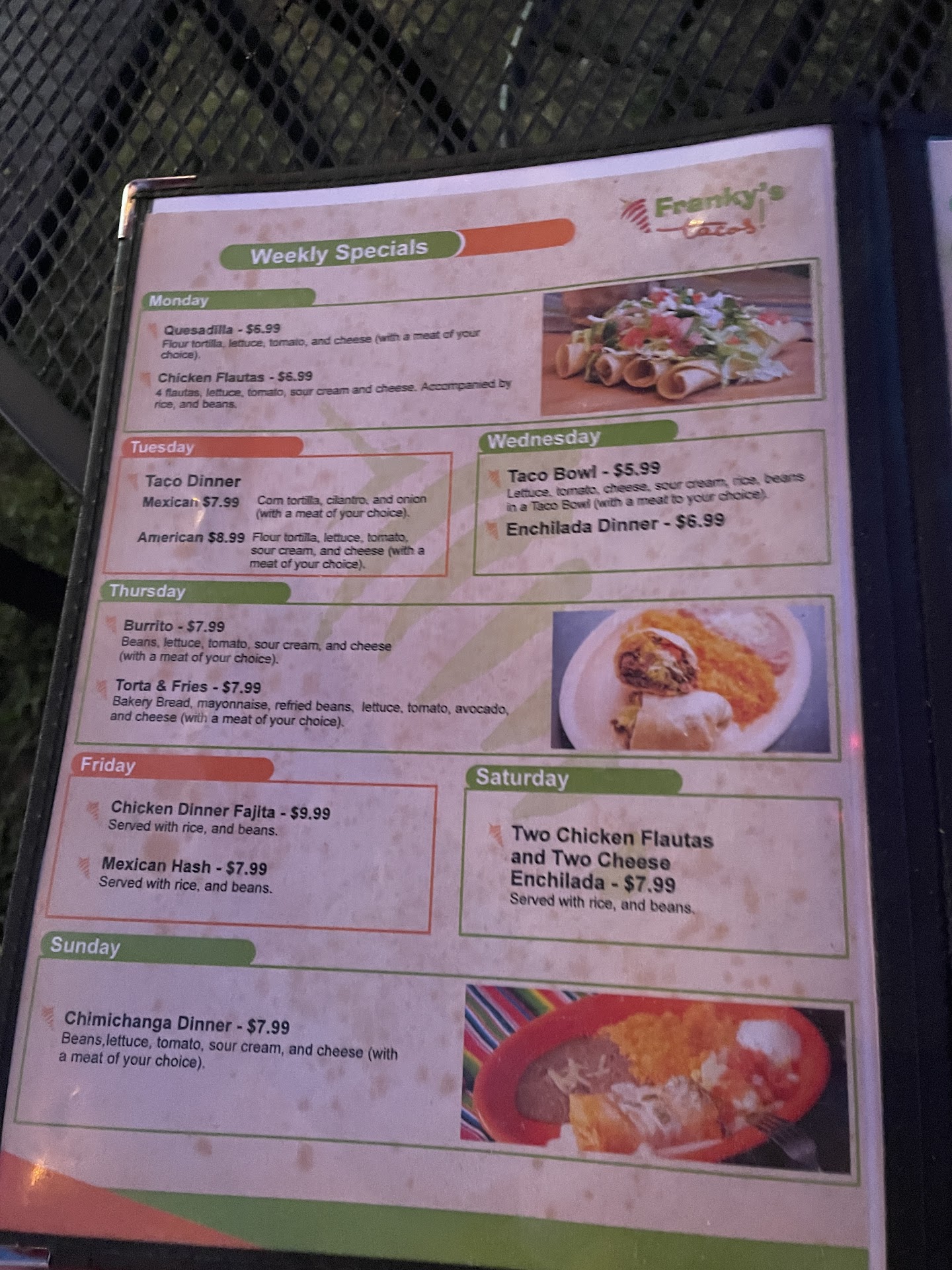 I had really high hopes for this place as I had heard several people talking about it. So we finally found time to go with another couple and give it a try on Sunday late afternoon. We walked in and stood looking around as we were new to the place. After a minute a young lady told us to just set where we wanted. It was pretty slow when we arrived but yet took almost 10 minutes to get our chips and salsa from who I found out later was not our server. Finally our server did come to the table and take our orders. We all had problems hearing him because he spoke very softly. Probably 20 to 25 minutes later our food was brought to the table with no silverware. That was retrieved quickly. I ordered steak fajitas with rice and beans. The only thing that was even close to hot was the corn shells! The rice and beans were cold and the steak fajita mix was barely warm. The steak was tough and sparsely adorned with very few onions and green peppers. The table next to us was later filled in with 4 fairly intoxicated guys who were eating and drinking all while being very loud and obnoxious with very foul language. Glad we didn't bring our 2 grandkids with as as we sometimes do. I didn't see Franky or any management around our I would have probably said something then. Needless to say after having eaten fajitas all over this country I can honestly say these rated at the bottom of experience. Why wife had a chimy and was equally disappointed. This being our first experience there we are hoping to try it again and have a much better outcome. I'm a bit concerned that Franky has purchased the Mishawaka bar and is now stretching himself...