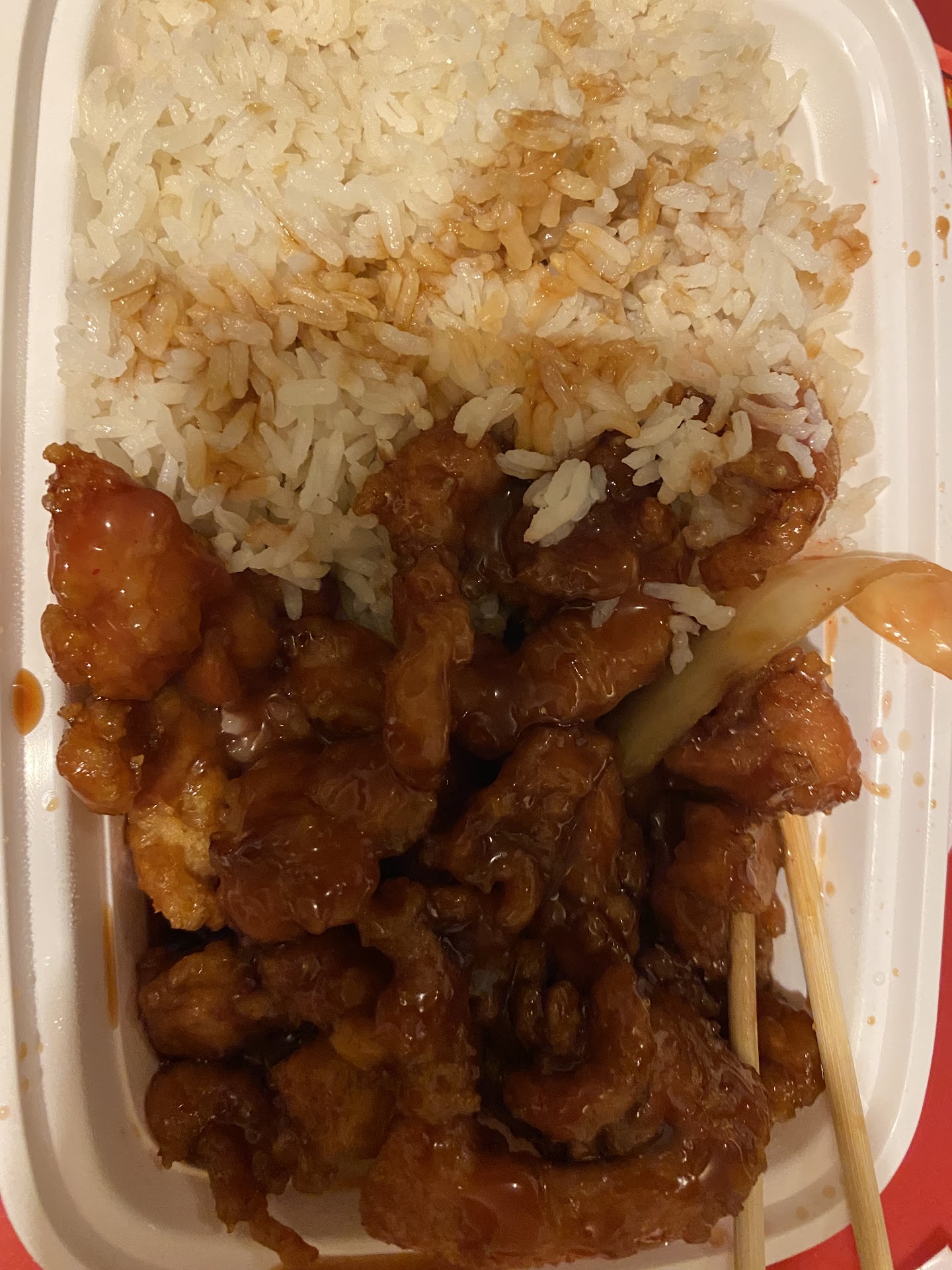 Check how much actual meat there is in your order I ordered tonight and literally had an entire option in soy sauce with a FULL HUGE SLICE ONION. 3 MED TO SMALL SIZES OF BEEF. SO INSTEAD OG MONGOLIAN BEEF ITS MONGOLIAN CARMELIZED/BURNTONIONS WITH HINTS OF MEAT. AND THE CHICKEN FRIED RICE WAS RICE WITH A FOOD COLORING. MAYBE A HALF HANDFUL OF PEAS. CALLED AND WAS TOLD HE WOULD DBL THE MEAT ON MY NEXT ORDER. AO I HAVE TO SPEND MONEY TO GET MY MO EYS WORTH THE SECOND TIME . WHEN DID THE CHINESE RESTAURANT START APPLYING HOOD RULES TO PUBLIC BUSINESSES. I ONLY TAKE A BURN FROM ANYONE ONCE. NO WAY WILL I GO BACK FOR MORE OF WHAT I CAN DO ON MY OWN...
