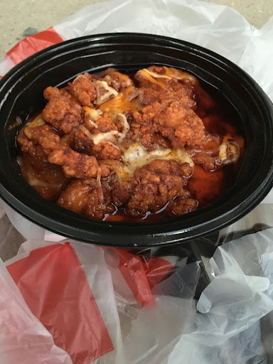 Read moreOrdered a chicken strip meal, 1 spicy chicken Mac n cheese bowl, and 1 regular famous bowl. Was told there would be a 6 minute wait on the chicken strips then we got to the window, paid, and were told to pull ahead and wait…no biggy. 22 minutes later, a man steps out and asked my sister and I if we were waiting on something…Yes, our food. 7 more minutes to by, our food comes out. Everything is right but the Spicy Chicken Mac N Cheese bowl. I go inside, no one is around. I stand there about 2-3 minutes until a woman comes out. I tell her this is regular chicken and not spicy. Instead of making it right, she takes it, and layers about an inch or more of some type of hot sauce then hands it back. Not only was it inedible due to the amount of sauce, but her lack of care for the food or customer service or the time it took didn’t help. I’m a server, have been since 2010 and this whole experience was unacceptable no matter fast food or sit down restaurant. “T” needs to be re-trained or find a new line of work. Wouldn’t recommend this place to anyone. Picture attached to see the disgusting mess she made of my food. Side note, the place was dead and it was about 8pm when the whole...