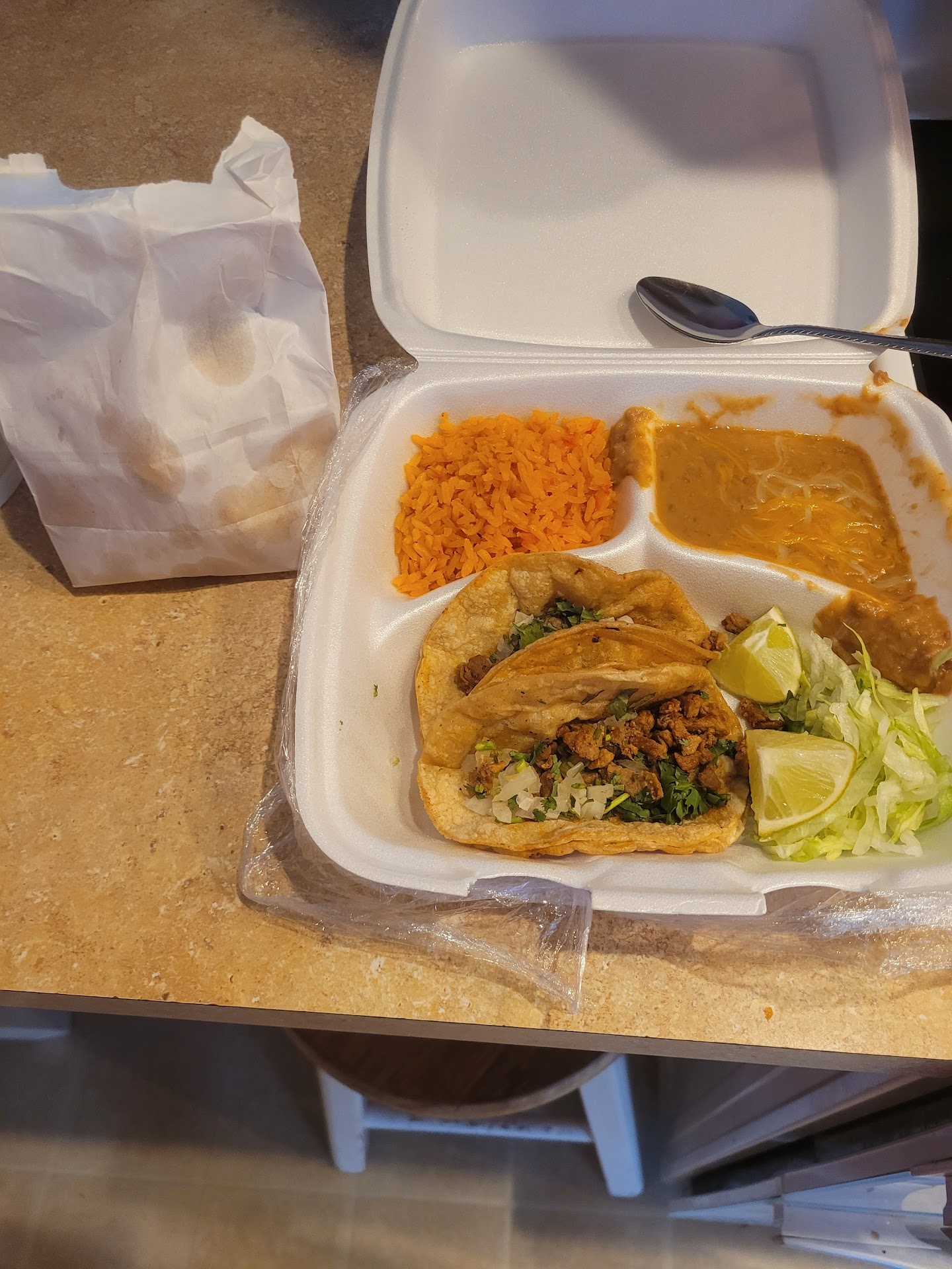 Read moreI got a carry out order for 3 steak tacos on Taco Tuesday. The cashier was very nice and told me it would be 10-15 minutes. I could tell she was working hard to get orders out. It ended up being 20 mins. I wish they would’ve just told me that at the get go bc I had to go to the Post Office and would’ve done that first. The women’s bathroom was occupied the entire time I was there somehow which was also a bummer. (Only 1 stall).