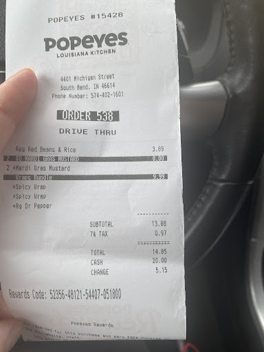 Read moreWell, it didn't take long for this location too long to go down hill. I LOVE Popeye's. However I won't be visiting this location anymore. Last 3 visits, progressively got worse. No one puts together orders as they are made. They pass out orders not in order. My food sat under so many other orders, I'm shocked I got eveything I ordered. People several orders after mine getting food before me. Lobby was disgusting. Fountain wasn't stocked. Manager cussing in the back, and handing out her friends food first who just ordered. When they threw my bag at me after I waited for 15 minutes, I asked for sauce, was ignored once, and then they grabbed a huge handful of the messiest stuck together popped open packets and threw them in my bag. Food was barely hot when we got it since it sat for so long waiting...