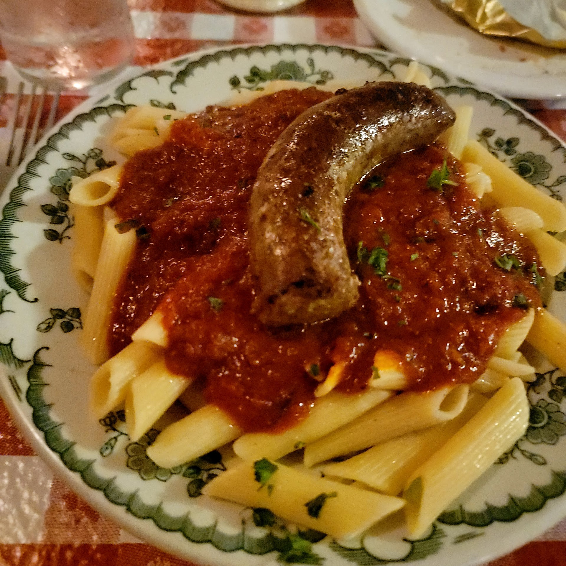 Okay, unimpressed so far but we're in for the ride, now. Our server kept suggesting to pair the chicken with some sort sausage sauce, which I did. The "sauce" was just sausage cooked in a tomato base, which I was charged extra for adding.
