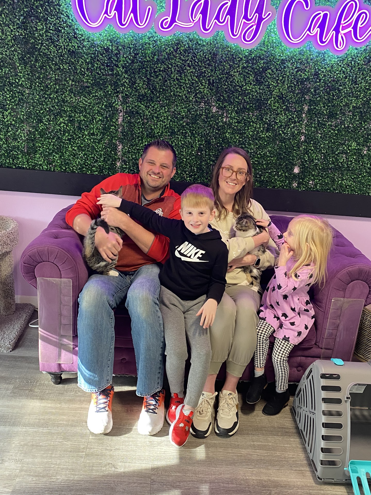The Cat Lady Cafe is truly a special place. After losing our beloved dog of nearly 15 years, we were hesitant about bringing another pet into our lives. As self-proclaimed “dog people,” the idea of adopting cats—and not just one, but two—seemed completely out of character. With young children and a busy lifestyle, a puppy simply wasn’t an option, but our seven-year-old had been asking for a cat for over a year. Meanwhile, our three-and-a-half-year-old, who is still learning to be gentle, made us cautious about introducing any new animals into the family.