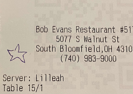 Read moreIf I could give zero stars I would. We have ordered from here thru their app a few times and something has always went wrong. This time we didn't get our food at all, I call the store and I'm told door dash picked it up. I told them I never received it and the girl talked to her manager and he basically said not his problem we have to talk to door dash.... Well I didn't go thru door dash I went thru their Bob Evans app... So. I have no order number or anything. I call door dash and she tells me that she will call the store and see if they will redeliver it or if not, refund me and that they don't deal with the money bc Bob Evans takes it out directly. The manager plain out said nope they are not remaking or redelivering and they would not refund. So basically the girl from doordash got a hold of Bob evans support and opened a case to get me refunded. So as far as this location... I will never go to again because obviously the manager feels his store is doing good enough that he doesn't bother with good customer service. Never once got on the phone with me or even tried to figure anything out. Poor management. If corporate reads these reviews and has ever wondered why this location does horrible... I would look...