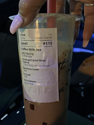 I got coffee with coffee jelly (that's rare to find!) and brown sugar tapioca. wasn't expecting the tapioca to be more of a jelly, but it's not bad.