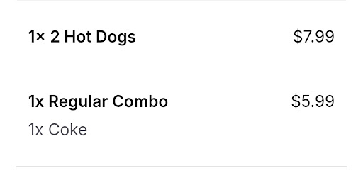 Read moreI ordered the 2 Hot Dog Combo at this Nathan’s location, expecting a bundled price that includes hot dogs, fries, and a drink. Instead, they charged me separately for 2 hot dogs and then tacked on an extra "Regular Combo" charge. This resulted in me paying more than what should have been the actual combo price.