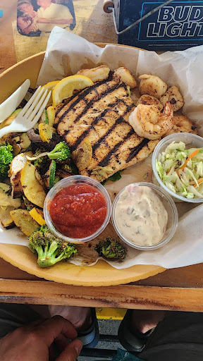 Read moreI guess this isn't the place for me, or my family. After reading the reviews we were expecting something a little better. Upon arriving just as they were opening we were told 40 minutes for first available. I agreed to that much to my chagrin. After 90 minutes we were called to sit at a picnic table on a bed of shells. I did mention to the hostess, there were people seated before us that arrived after our group of 4 to no avail.Actually she was a bit snippy about it.I will admit service was good and we were instantly waited on. The overpriced food was average at best but the coleslaw was tasteless. Probably the fish tacos were the best choice. Everything else was so so fare. I like grouper cheeks but $25 for them is off the charts.I don't see the attraction here. Possibly because you're close to the water?
