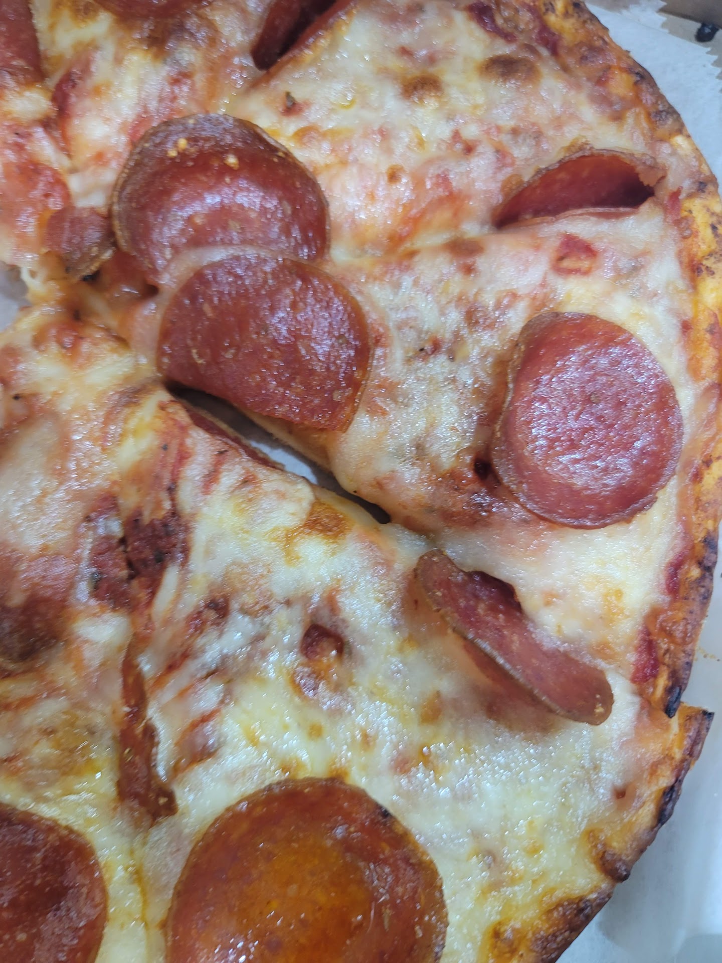Firstly, both chicken pizzas lacked flavor and had maybe 2-3 penny-sized chicken pieces on each slice. There was absolutely no flavor of either tikka or tandoori, which was quite disappointing. Additionally, the Garlic Bread lacked the taste of garlic, and the cheese was below par.