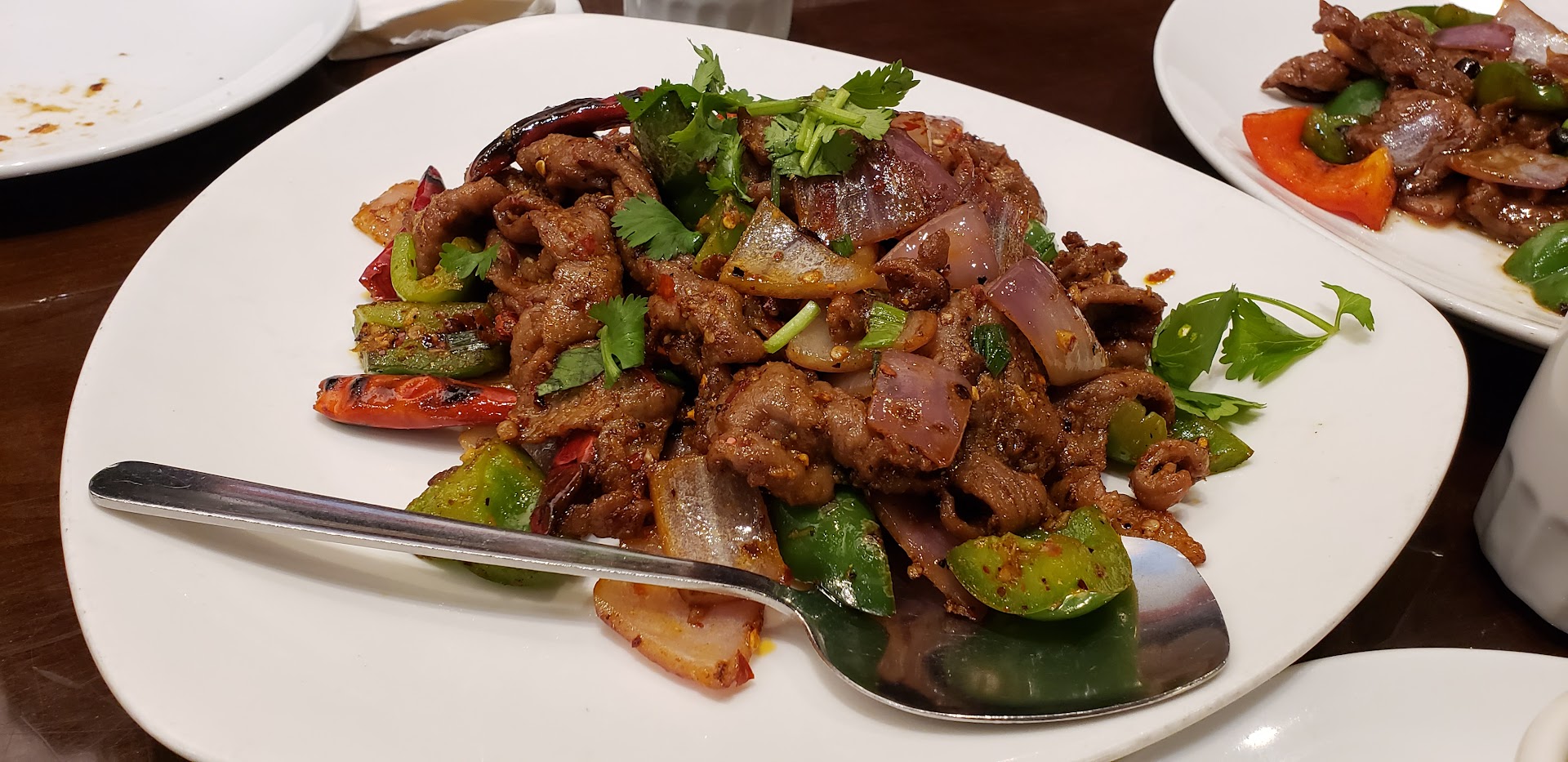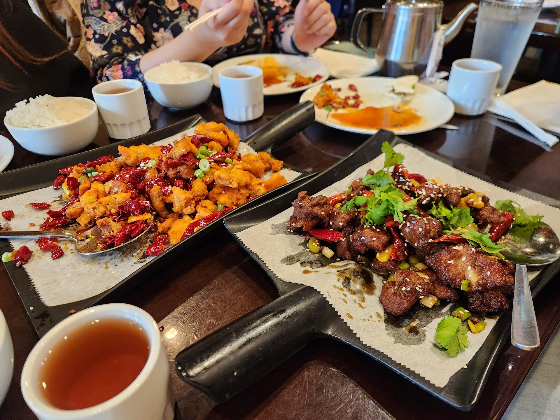 My husband ordered the Dry Pot with fish, which was cooked in a spicy sauce and included shiitake mushrooms, bamboo shoots, bell peppers, and a generous amount of dry chili peppers. The heat from the chilis nicely complemented the delicate fish. Both dishes featured fish that was lightly battered, quickly stir-fried, and remained tender without being overwhelmed by the other ingredients.
