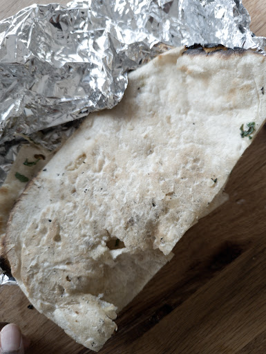 The Naan bread had good texture, but was shallow in flavor. It looked like it had a little bit of butter on it for flavoring, and that's it.