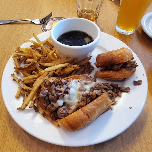 I think we got there around 5:15 on a Friday... Big place, I think we were like 1 of maybe 5 tables eating. Band was getting tuned up. Seemed promising. While my server was definitely friendly, and attentive when it came time to order. When she brought the wings out and then asked me if I wanted some ranch, to which I said yes, but then waited a good 15min for her to bring it to me... Hey the cook on the wings was perfect (couldn't have been better), but the favor was off. I ordered garlic parm wings and it tasted mostly of like sour lemon, kinda strange... Had me questioning if the meat was bad or someone messed up the sauce. Didn't get sick so, gonna assume they messed up the sauce. I'm looking at the menu and I see they do prime rib Fri/Sat thinking my French dip made with prime rib would be amazing. The taste was great, unfortunately I could barely eat it. The meat was so tough and chopped like for a taco. It's like they made it last weekend and served it up to me in a sandwich. Big chunks of inedible hard gristle in there. My kids food was just ok. Kinda hard to mess up a salad. I don't know if it was just an off day or what. For me it was 2-3 star experience but I don't want to mess with their reviews too much. I will probably try again later and update my review if it's the same experience to reflect what I really thought. I think these guys can do better and there's definitely room for improvement. There was 1 thing I found very good, their thin straw cut fries,...