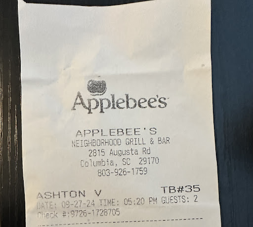 Read moreAPPLEBEE'S IN WEST COLUMBIA IS HORRIBLE!!!! !!!! I never blast anything or anybody but today I have to make an exception. I took my family out to eat after my grandson's football game on Sunday 12-29-24. When we walked in the waitress was cursing at the hostess. It was 6 of us so we waited til they put together 2 tables so we could sit together. We were told it would be about 10 minutes before anyone would wait on us because they had other customers to tend to. No problem. When the waitress came she took our order and bought us water and drinks. It took a minute to get our food but I understand, It was a little busy. When the food came the waitress spilled Parmesan sauce all over my pants and shoes ( my Christmas gift from my husband). She quickly apologized and walked away. I figured she went to get a cloth to wipe the table and maybe bring back napkins so I could wipe my shoes and pants but that was not the case. My son in law quickly began to clean my shoes and pants legs with the paper towels he already had. I was a little disturbed but I understand accidents happens. My shoes were Suede ankle boots and my husband Never buys anything that's not expensive. I patiently waited but it never happened. No rag, no table wipe off or anything!!!! Still I just decided to eat my dinner then I would go home and try to get my shoes cleaned. The waitress came back after we ate and offered me a free dessert for my troubles. I just told her to take the $10 she was gonna give for the dessert and take it off my bill instead. She said she would have to clear it with her manager. She returned and the manager said he would only discount $5!!!! My bill was $133 and I only asked for the price of the desert to be discounted off my bill that they offered me!!!!! Now I'm upset. You wasted Parmesan sauce all over me, never wiped the table, floor, chair, let alone offered to even bring paper towels so I could clean it off myself. I quickly asked to speak to the manager. When the manager came he said the sauce was only $2.99 so he would discount $5. I quickly told him the taxes on my new shoes was more than $5!!! He was only thinking of his loss!!!! He didn't give a damn my Christmas gift was messed up or the inconvenience my family went through!!! He could see the mess was still on the floor and never said anything about it!!!! I told him I didn't spill it on myself, his waite staff did!!! I shouldn't have to ask for anything, he should of did it cause I was a paying customer that thought enough of them to eat at their establishment!!! He slowly agreed to take $10 off my meal. I am still floored at the attitude and inconsideration of the establishment. I quickly paid my bill and left ( still left a tip for the waitress that spilled the sauce on me). I will NEVER eat...