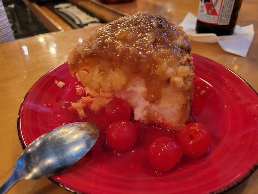 Read moreStrange layout and a bit difficult to locate but we gave it a shot last night. Interior is very rustic and barebones. Service was good initially and our drink orders were filled quickly and our orders taken promptly. It took a little too long for our food to be served and there was some messed up side orders. My shrimp po boy was OK but the fries were kinda bland. Fried okra as a side was a nice surprise. The main problem is that they appeared to be understaffed with only one inexperienced young girl doing most of the serving. They had a hostess mostly just standing around and clearing a few tables. Our waitress was told that we wanted separate checks when we first sat down but she apparently didn't remember so it took forever to get our individual checks which weren't totally accurate but we didn't want to linger any longer so we paid and exited. Seems to be a hangout for older dog loving folks and they had a singer who came on right behind our table halfway through our meal. Won't be rushing back to give it another shot but it has some promise if they can get their staffing...