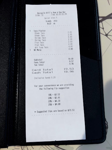 Barnacle Bill's has a great friendly "small place" vibe, a perfect place to get a drink at the bar but also a full restaurant with nice large tables and booths on one end of the building so a comfortable place to have a wonderful casual dinner with the wife, family or large group.